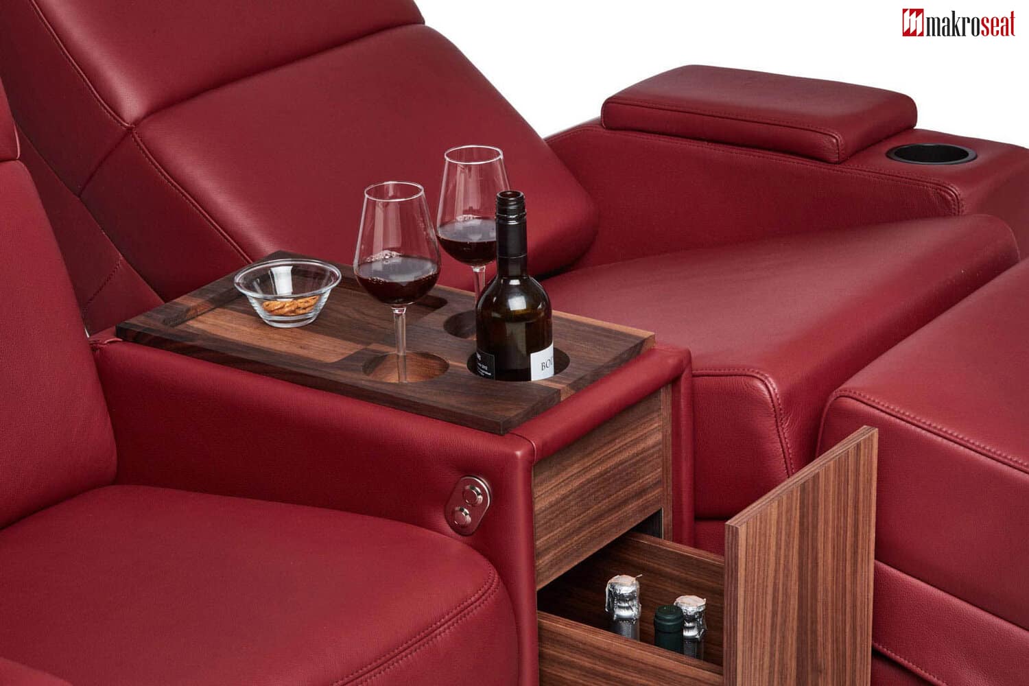 Makroseat home theater seats is a product of comfort and design. Now, an increasing number of home theater seats are installed both in Turkey and abroad. Most models include cup holders and USB charging points for a true home theater feel. Our seats have many seating options, from single seats to connected seats, in both straight and curved configurations. Home theater seats have a motor that will allow the seat tilt to be positioned for optimum viewing comfort, and offer a large number of seating options including corner configurations. There is a storage unit with cup holders and USB charging points. The Home Cinema Chair series offers quality genuine leathers and beverage coolers with a more contemporary feel in cup holders. All home theater seats come with a five-year warranty.